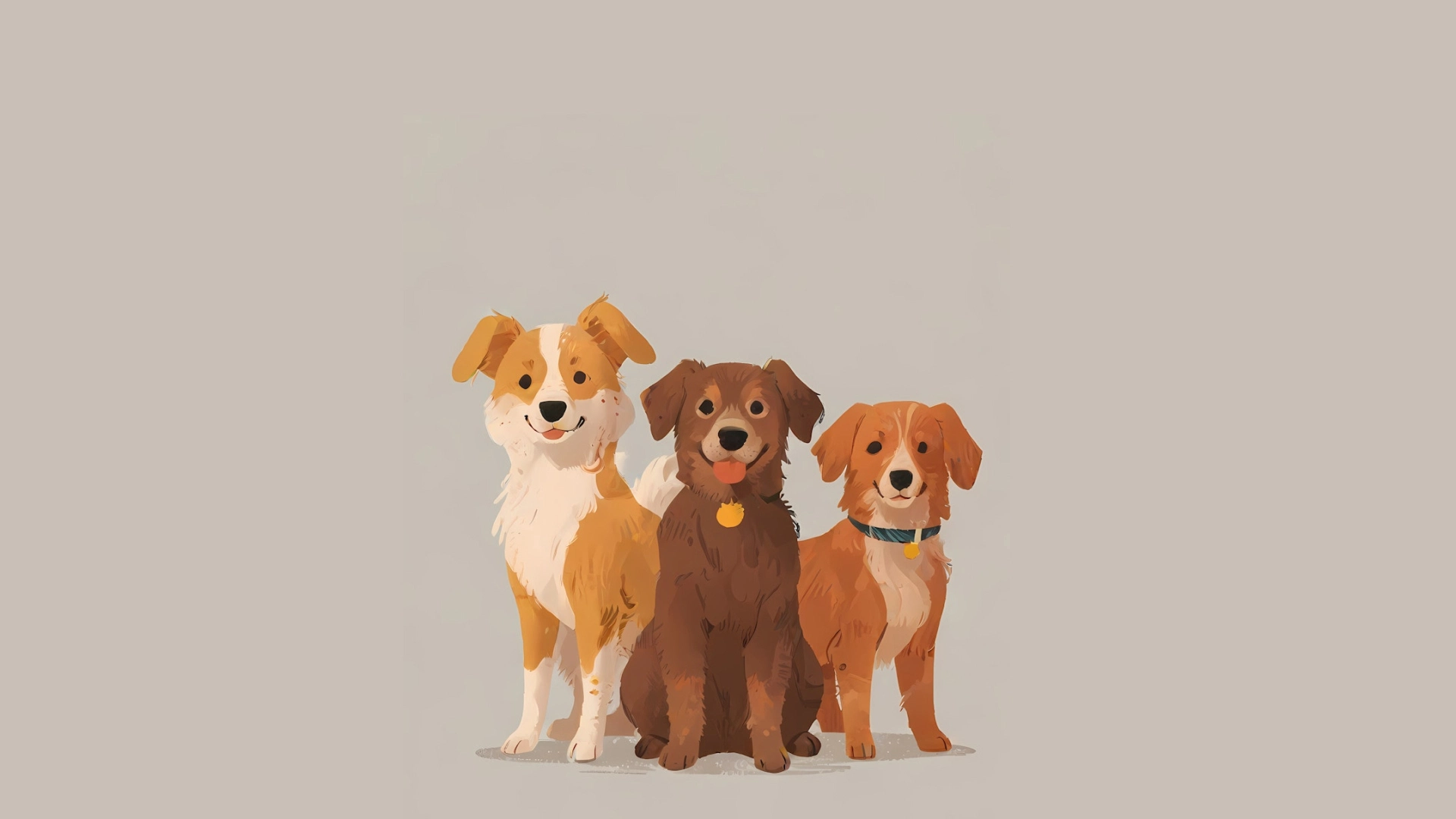 Cartoon Dogs Trio Charming illustration of three cartoon dogs sitting together, showcasing different fur colors and playful expressions.